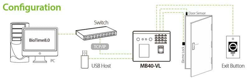 Mô hình kết nối với ZKTeco MB40VL